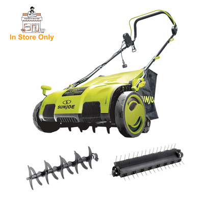 Restored Sun Joe AJ805E | In-Store Exclusive | 15-Inch, 13-Amp, Electric Dethatcher and Scarifier, With Removable 13.2-Gal Collection Bag, 5-Position Height Adjustment (Remanufactured)