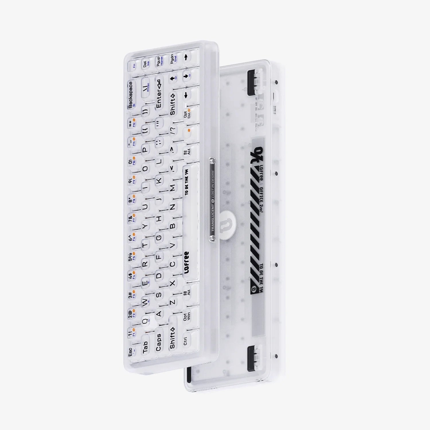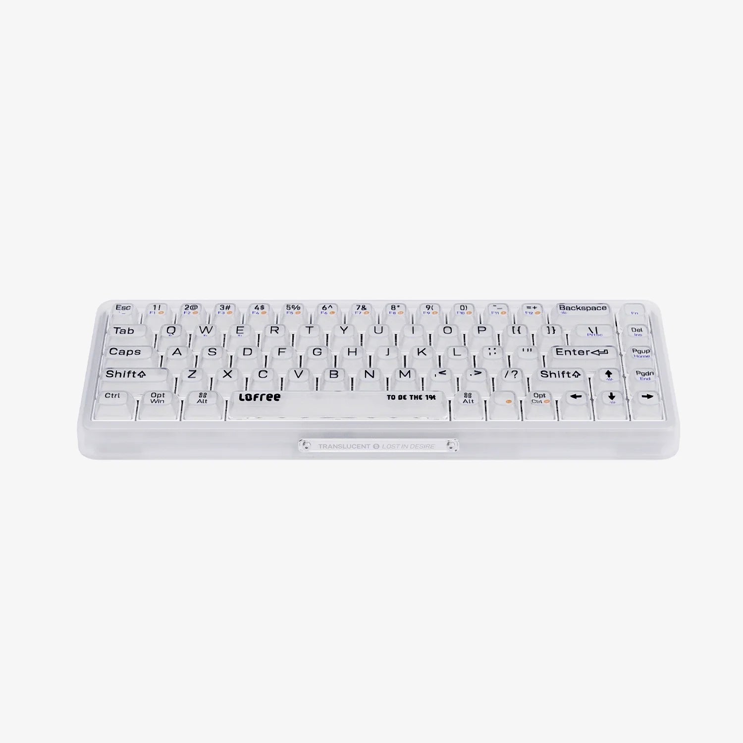 The "Misty" version of the 1% series boasts a frosted housing, providing a visually appealing look for Office 2㎡. Not as transparent as the original 1%, "Misty" has a fully frosted white keycaps and chassis, along with upgraded Hot Swap and Poron Silencing Pad functionality for an even better experience. The rich white LED backlit contributes to the attractiveness of the frosted design, completing the desired look of the LOFREE 1% "Misty" Keyboard.