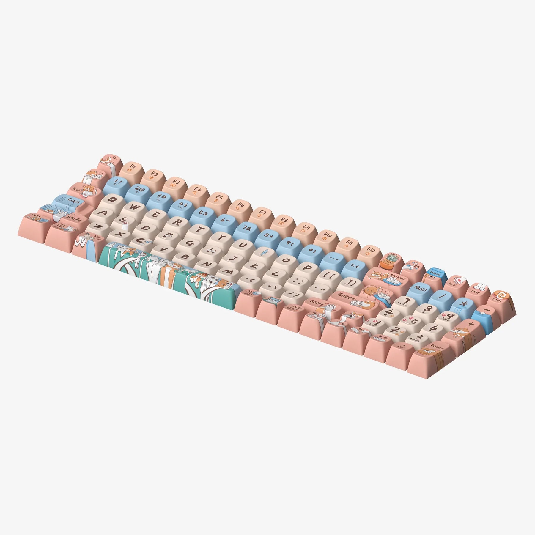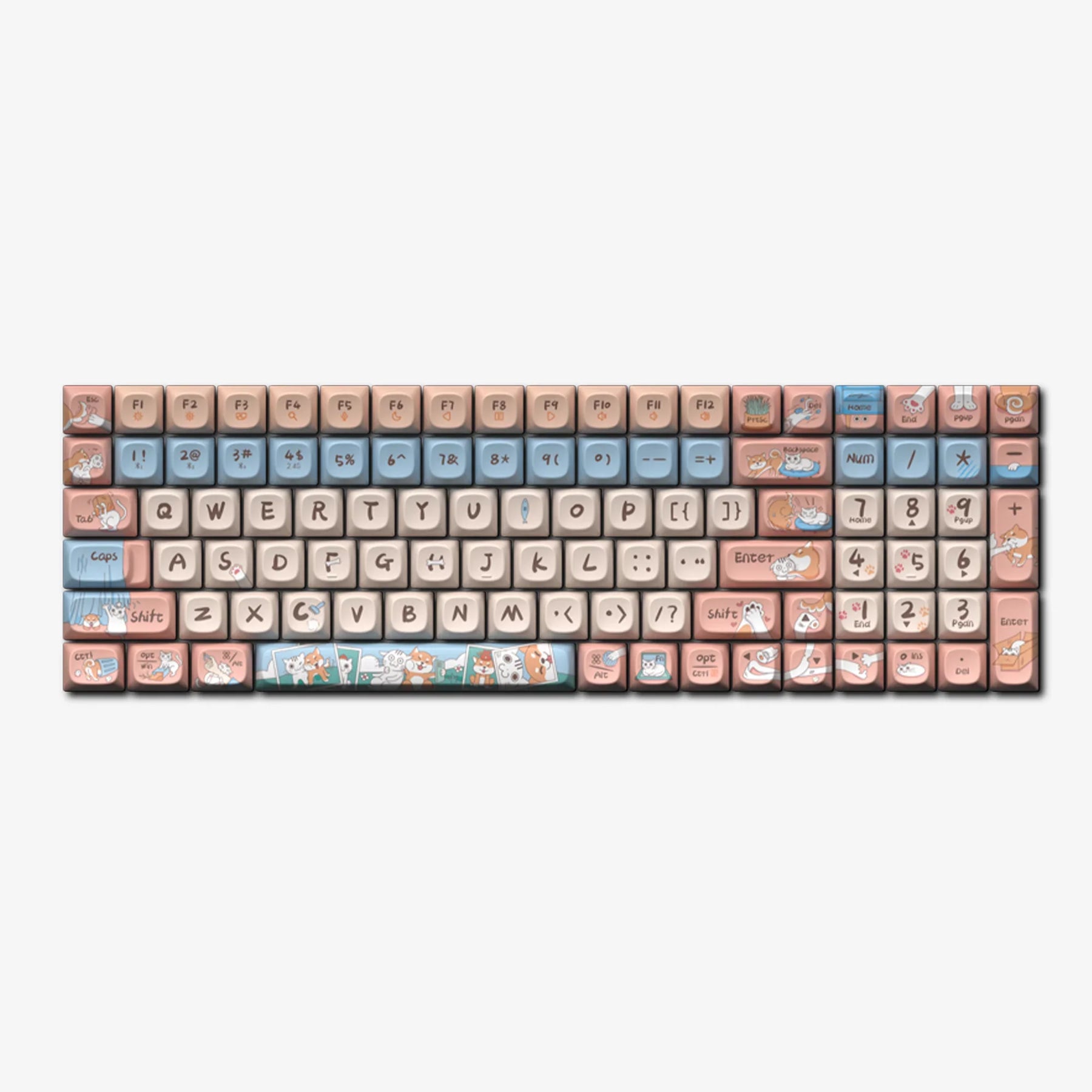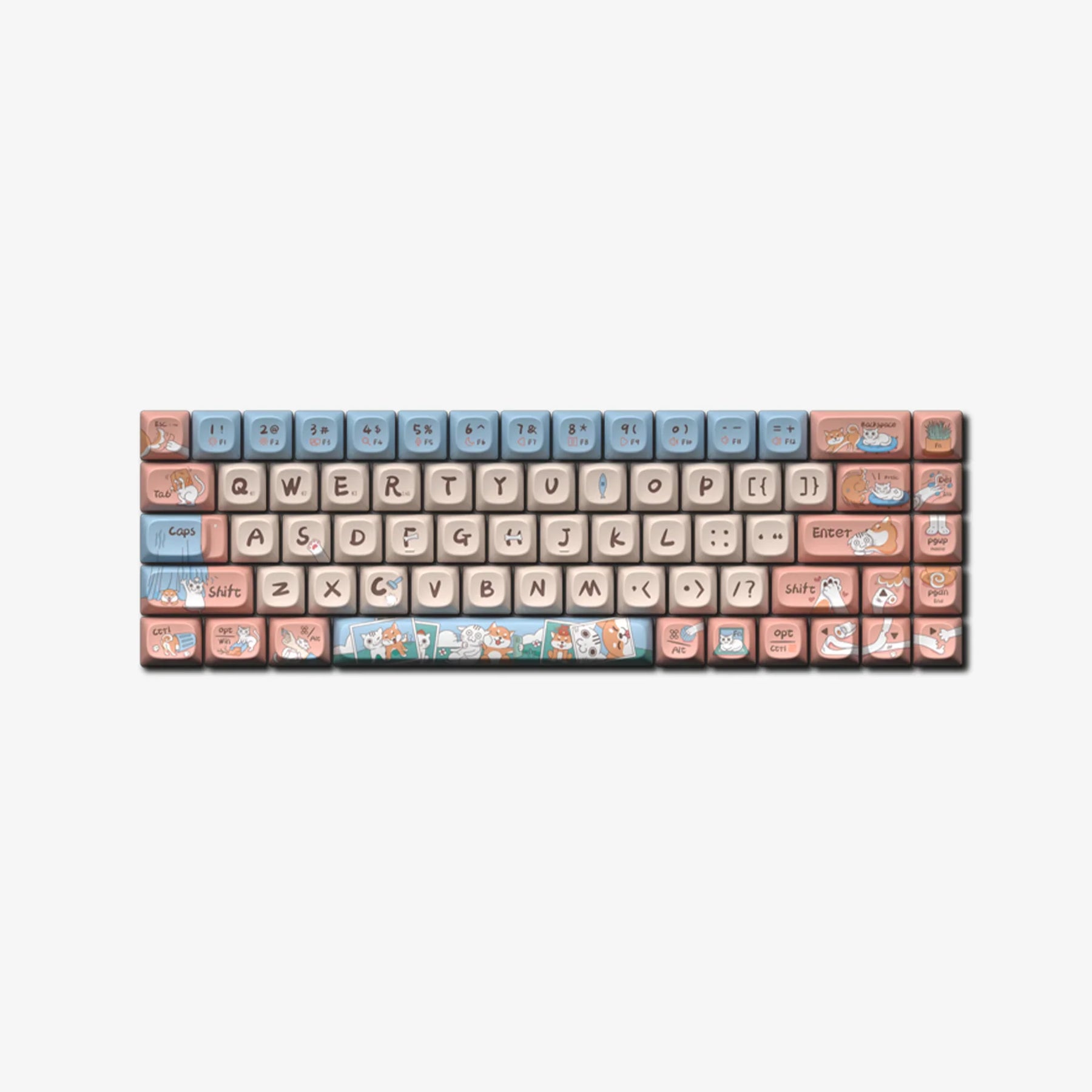 "Cat and Dog are Friends" extends the adorable style of "Cute Kitty" with a new, enthusiastic, and adorably goofy Shiba Inu companion. Designed to capture the unique interactions and affections between cats and dogs, these keycaps feature charming illustrations that depict their loving yet playful everyday antics. The set of keycaps tells a small story, enabling you to feel the magic of this special friendship as you type.