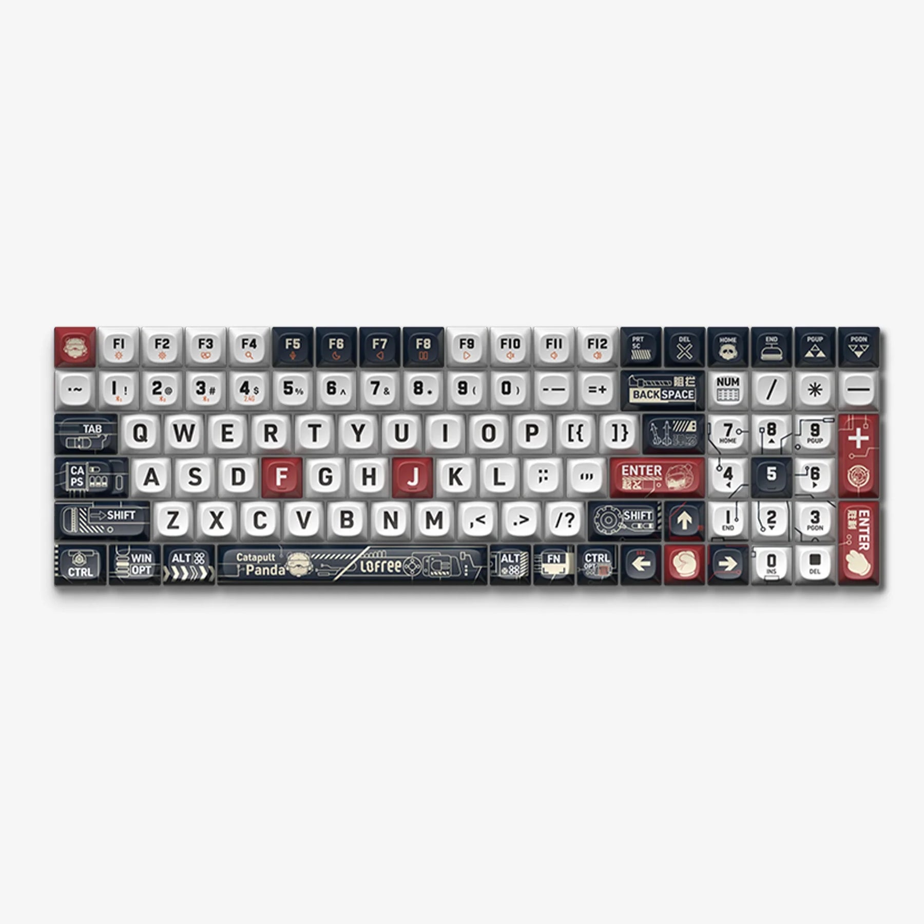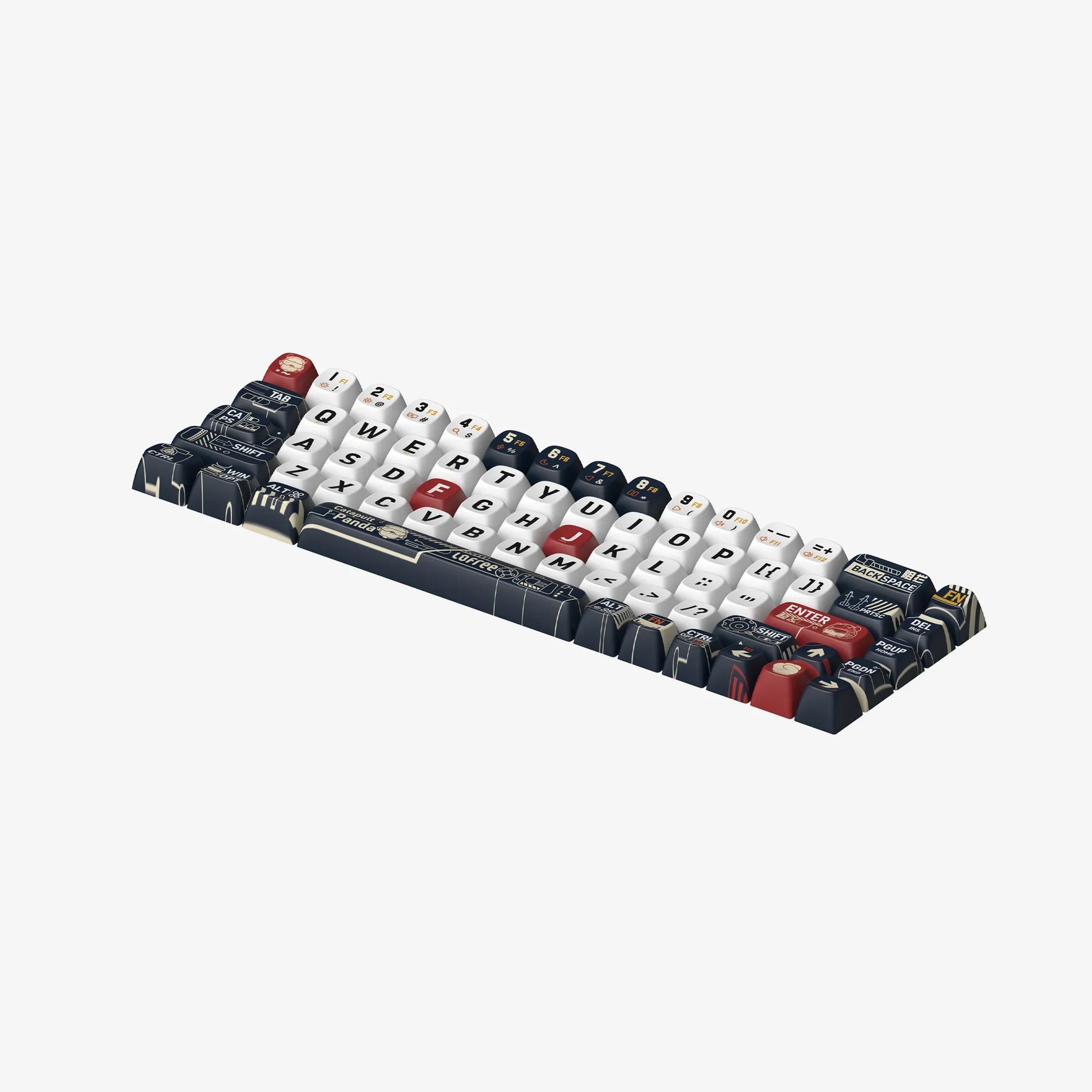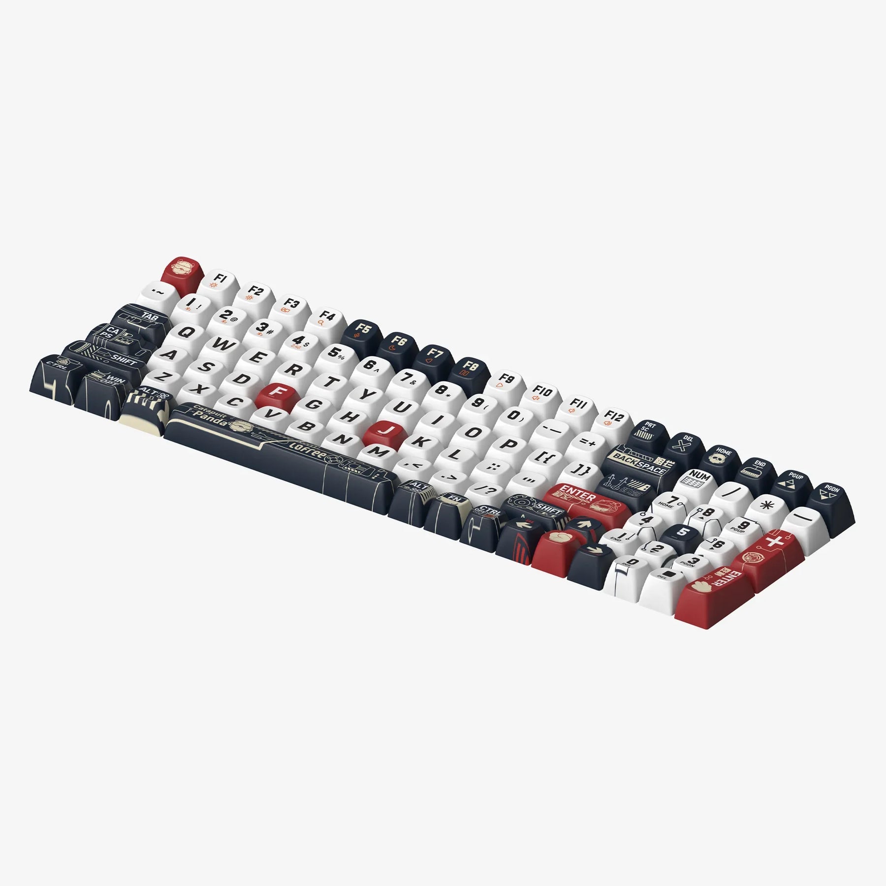 Panda-themed Keycaps, inspired by the character Navy Panda from the Chinese original animation IP. Emblematic of a sailor's spirit, the panda is calm yet unafraid of threats, embodying the courage and pride of naval personnel. These keycaps symbolize a journey into the deep blue, riding the winds and waves with the steadfast heart of a warrior with Mechanical elements used on warships. Adorn your keyboard with the spirit of bravery and pride.