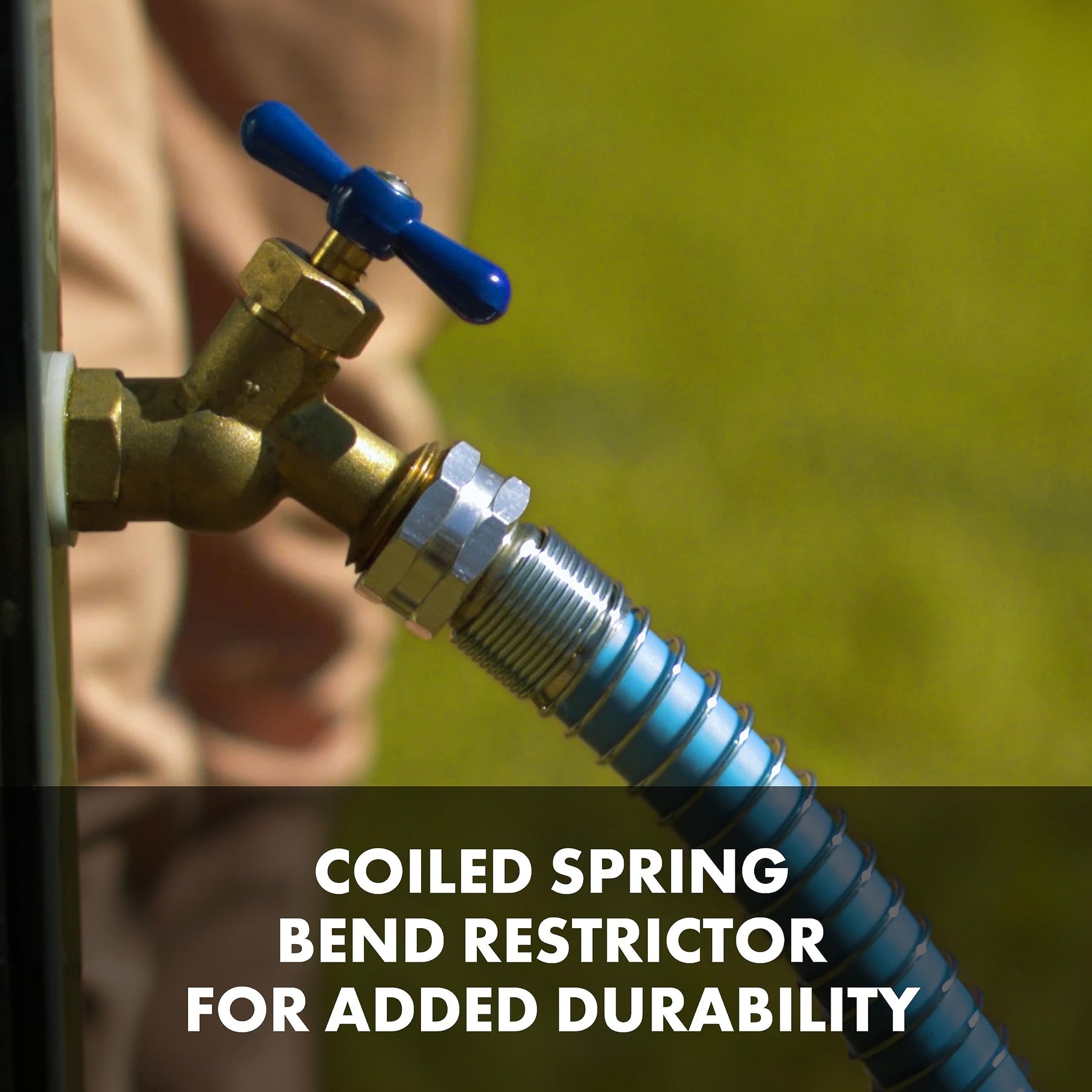 DRINKING WATER SAFE! Water your lawn with uninterrupted flow with the AJPGH50-DWS Hybrid Polymer Garden Hose from Aqua Joe. Constructed from a rugged, high-density, flexible hybrid-polymer material for maximum durability performance, Aqua Joe won’t twist, kink or tangle. Lightweight and easy to maneuver around trees, corners, plants, and other obstacles, you can water your yard garden without having to stop and straighten the hose! Equipped with solid, male female aluminum connectors, Aqua Joe provides a secure, leak-proof connection. The coiled spring bend restrictor provides unrestricted flow without the worry of twisting at the spigot. And the sturdy hybrid-polymer material is crush-proof, abrasion-resistant, and drinking water safe! So, give your lawn a cool drink of water and take a sip for yourself with the AJPGH50-DWS 50-ft Hybrid Polymer Garden Hose from Aqua Joe.