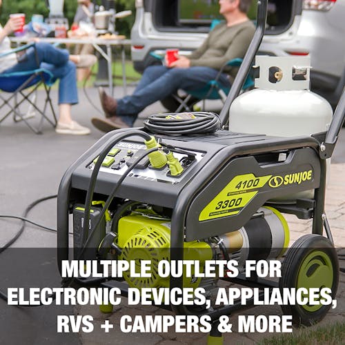 Restored Sun Joe SJG4100LP | Portable Propane Generator | Push-Button Electric + Recoil Start | Power Cooling System | 4100 Starting Watt | 3300 Running Watt | Battery & Charger (Refurbished)