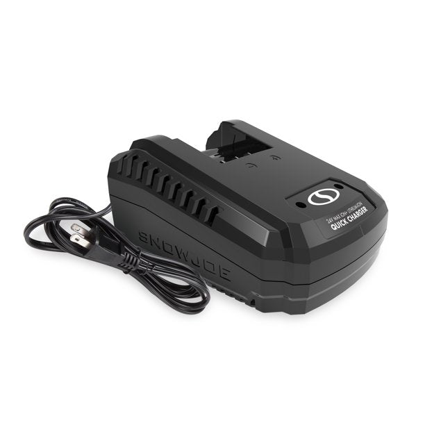 PLUG IN POWER UP! Boost your battery in less time with the 24VCHRG-QC 24-Volt Quick Charger from SNOW JOE. Designed to work exclusively with SNOW JOE's iON 24-Volt lithium-ion batteries, 24VCHRG-QC powers up your rechargeable iON batteries (and EcoSharp iBAT24 batteries) in as little as 30 minutes! Take command of your cordless power tools and get back to your task in less time. Or better yet, buy a second battery for unlimited runtime, so one is always ready to work while the other charges up! Equipped with thermal, over-voltage, and over-current circuit protection, 24VCHRG-QC safely charges and recharges your iON battery without any risk of battery pack damage. SNOW JOE'S iON battery and charger system provide eco-friendly means to safely and reliable power up your 24-volt cordless yard garden tools.