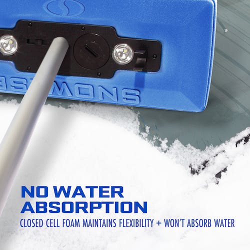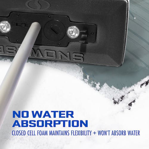 - 18 in. L x 7 in. W non-abrasive foam head pushes heavy, wet snow off vehicles without damaging paint, trim, or glass