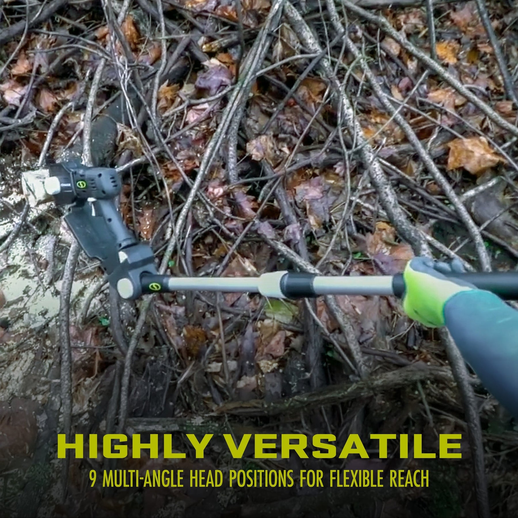 • HIGHLY VERSATILE: Later, when the limbs are down and there’s wood to be cut, the device quickly converts to a handheld chainsaw to make light work of loads of logs. And features 9 multi-angle head positions for flexible reach (-45° | -30° | -15° | 0° | 15° | 30° | 45° | 60° | 75°)