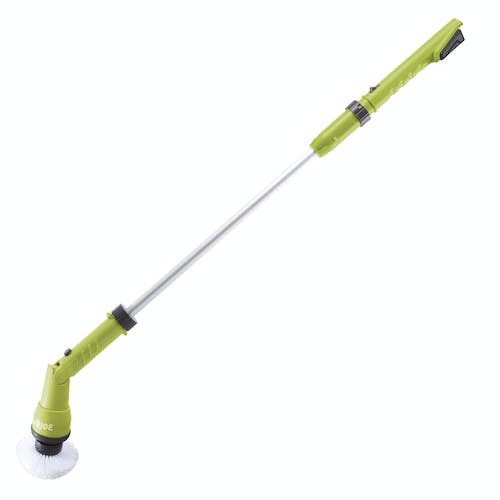 CLEAN HIGH SCRUB LOW WITH JOE!  Take the tiring, tedious, repetitive work out of your cleaning to-do list with the 24V-PWSCRB-LTW 24-Volt* Cordless Power Scrubber from SUN JOE! No more endless scrubbing by hand – tackle the toughest messes, mold and mildew, stains and more at home or on-the-go with cordless convenience. Perfect anywhere power is at a premium, like the laundromat, garage, pool or patio, SUN JOE’s power scrubbing dynamo also makes light work of household grime in the kitchen, laundry room or bathroom. Simply select from the four included, easy to clean, scrubbing brush heads to suit the task. The rotating head spins at two variable speeds — LOW (600 rpm) and HIGH (1000 rpm) — for light- to heavy-duty cleaning tasks. Effortlessly clean large surfaces in less time with the round brush or large flat brush head; Or, get in grout lines and corners with the cone brush and small flat brush. And SUN JOE doesn’t stop there! Go beyond the kitchen and bathroom with IONMAX power — the rechargeable lithium-ion battery system with a world of possibilities. Clean the car, tires hub caps, scrub gunk off of the grill, wash the windows, get grime off of grout and granite, and so much more!  Reach high or low without bending! SUN JOE extends from 27 in. to 50 in. with the included pole attachment to get to from those hard-to-reach corners of your shower and tub without the pain and strain on your back and knees. And when the job is done, simply remove the extension pole for compact, convenient storage in the closet or cabinet. Clean the whole house — from top to bottom and corner to corner — with SUN JOE! GET EQUIPPED.