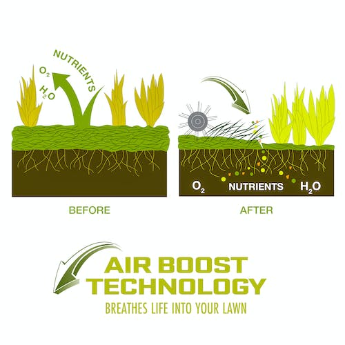 - AirBoost technology – spring steel tines for maximum thatch pickup