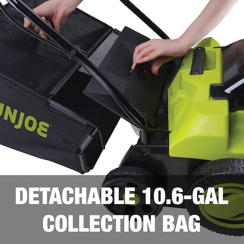 - Detachable 10.6 gallon thatch collection bag for easy disposal