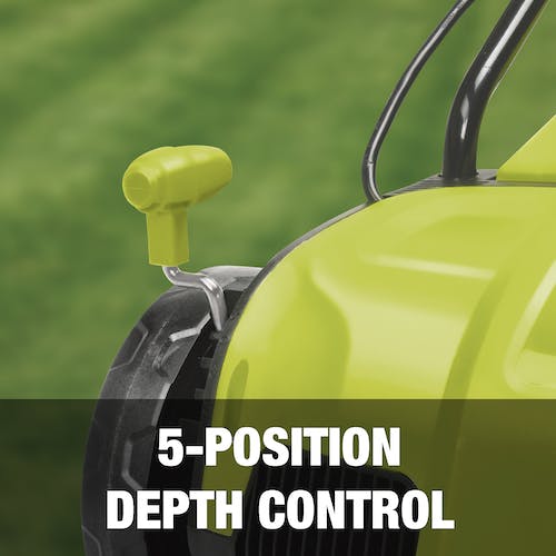 While ordinary manual rakes are tiresome to use and not very effective, the electric dethatcher starts instantly with the push of a button and easily gets the job done without polluting the atmosphere with toxic carbon emissions. Powered by a robust 12-amp motor, Sun Joe rakes a 12.6-inch wide path in a single pass to get your job done fast. Featuring enhanced AirBoost technology, the raking spring steel tines maximize thatch pick-up and stay sharper, longer for maximum performance. Equipped with a 5-position depth control knob, Sun Joe let's you tailor the raking depth from 0 in. (0 mm below the soil) to 0.4" in. (10 mm above the soil), and your scarifying depth from -0.4 in. (10 mm below the soil) to 0 in. (0 mm above the soil).