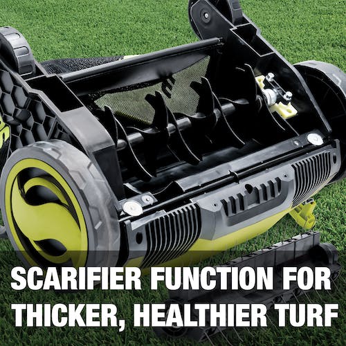 • Scarifier function to cut grass roots for thicker growth, healthier lawns