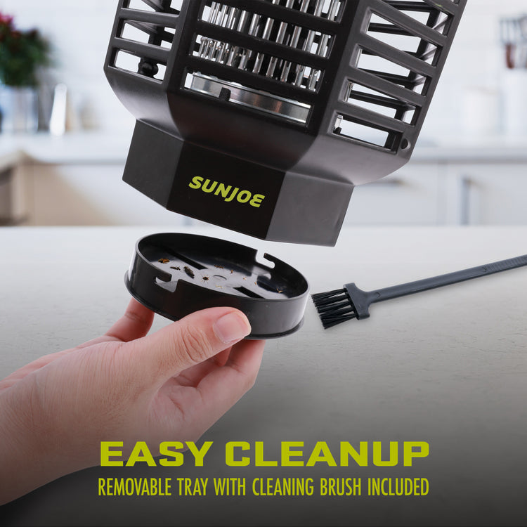 BUZZ OFF! Get set to zap those pesky bugs away and get equipped with Sun Joe’s 18-watt Electric Bug Zapper! Lightweight and weather-resistant, it can be hung just about anywhere for complete 360o coverage – porch, patio, deck or poolside. SUN JOE features a protective grid housing, chemical-free, non-toxic UV light and 3500-volt electric grid, to effectively lure, trap and eliminate mosquitoes, flies, gnats, moths, and other flying pests. Simply empty the removable collection tray when full. Featuring whisper-quiet operation, and a removable replaceable UV blacklight (sold separately), Go With Joe to keep your house, yard and garden free from undesirable pests.
