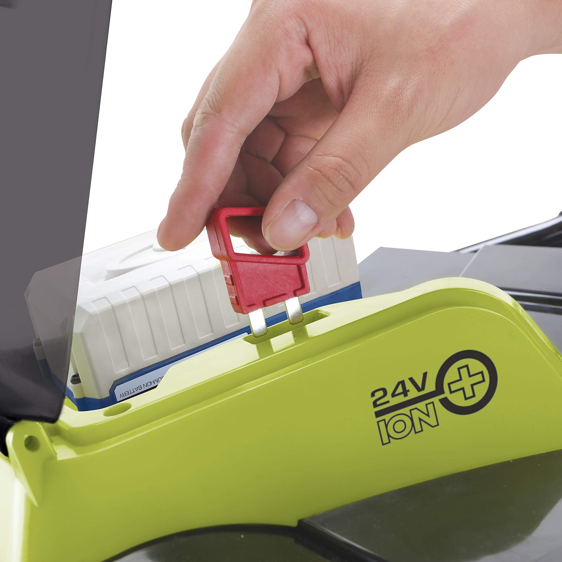 LAWN RANGER. Your grandpa's outdated reel mower just got a modern day upgrade! Next-generation cutting-edge grass-grooming tech meets the legendary line-up of iON+ yard and garden tools with the 24-Volt 15" Cordless Reel Mower from SUN JOE. Powered by the exclusive 24-Volt iON+ Series, Sun Joe includes an eco-friendly 4.0 Amp Hour lithium-ion battery for no-fade power + performance, with up to 50 minutes of runtime per charge. Mow up to 4,910 sq ft of grass with zero carbon emissions and no fumes + fuss. Sun Joe's 360 Watt motor is engineered for efficiency, providing you with maximum motor performance + cutting precision. The innovative 5-blade RAZOREEL rotor lifts and cuts each individual blade as you walk, clearing at 15-inch path in a single pass. Customize your cutting height with Sun Joe's 4-position manual height- adjustment lever — choose from 0.6", 1.0", 1.5", and 2.0" for the perfect, precise trim tailored to your yard. Plus, Sun Joe’s included 11.9 gallon grass-collection bag makes disposing of lawn clippings quick and easy. And when the work is done, simply plug the iON+ battery back into the included Quick Charger and you're ready for the next mowing day. So, Cut The Cord and Mow With Joe! GET EQUIPPED with 24V-CRLM15 24-Volt 15-Inch Cordless Lawn mower from SUN JOE.
